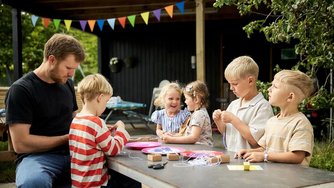 Er I ude i tidsrummet, skal børnene være i skygge, eller være beskyttet af tøj, der dækker til knæ og albuer. Derudover skal de bruge solhat og solcreme, hvor tøjet ikke dækker.